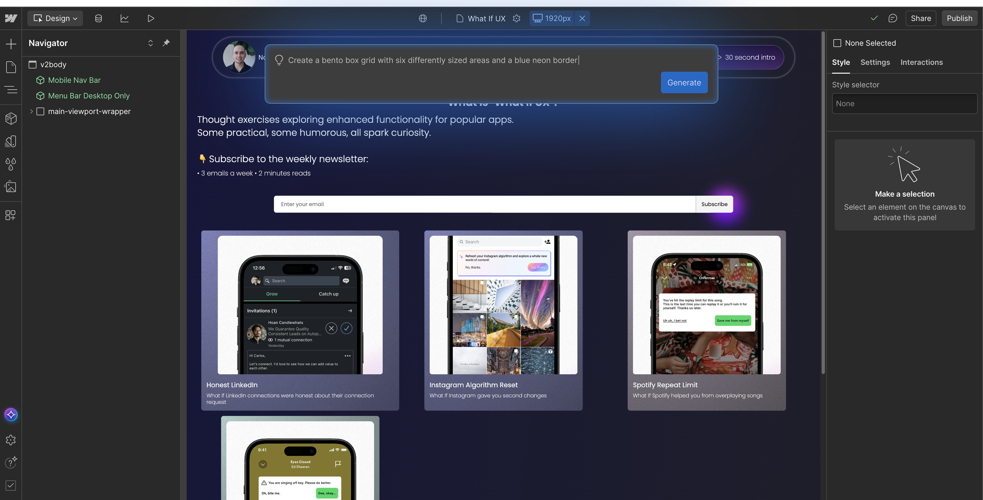 What if designers could prompt elements directly inside Webflow’s Designer?